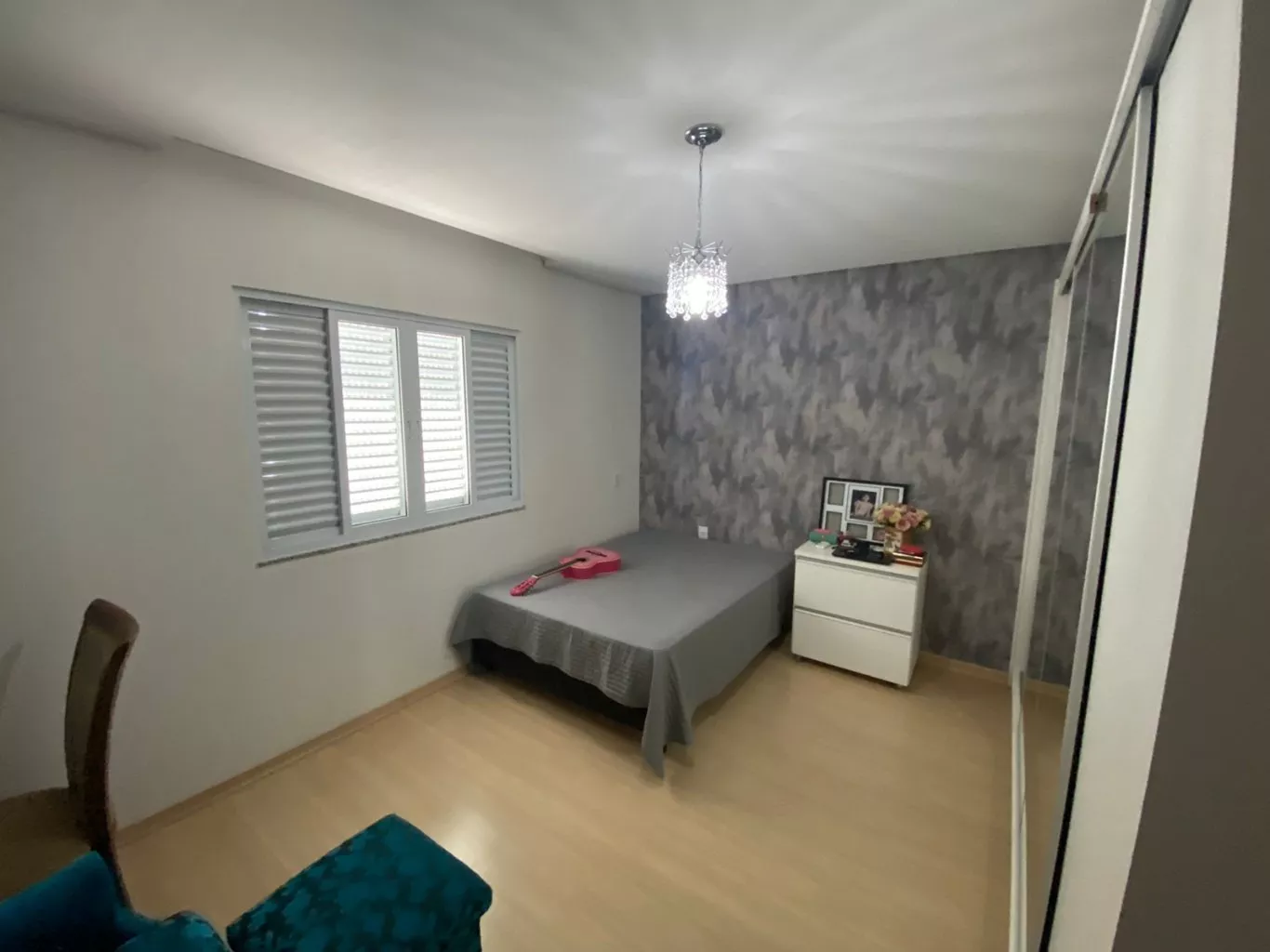 Residência contendo: garagem, sala de estar, sala de jantar, sala com lareira, cozinha, área de serviço, 01 suíte com sacada + 02 quartos e banheiro social.