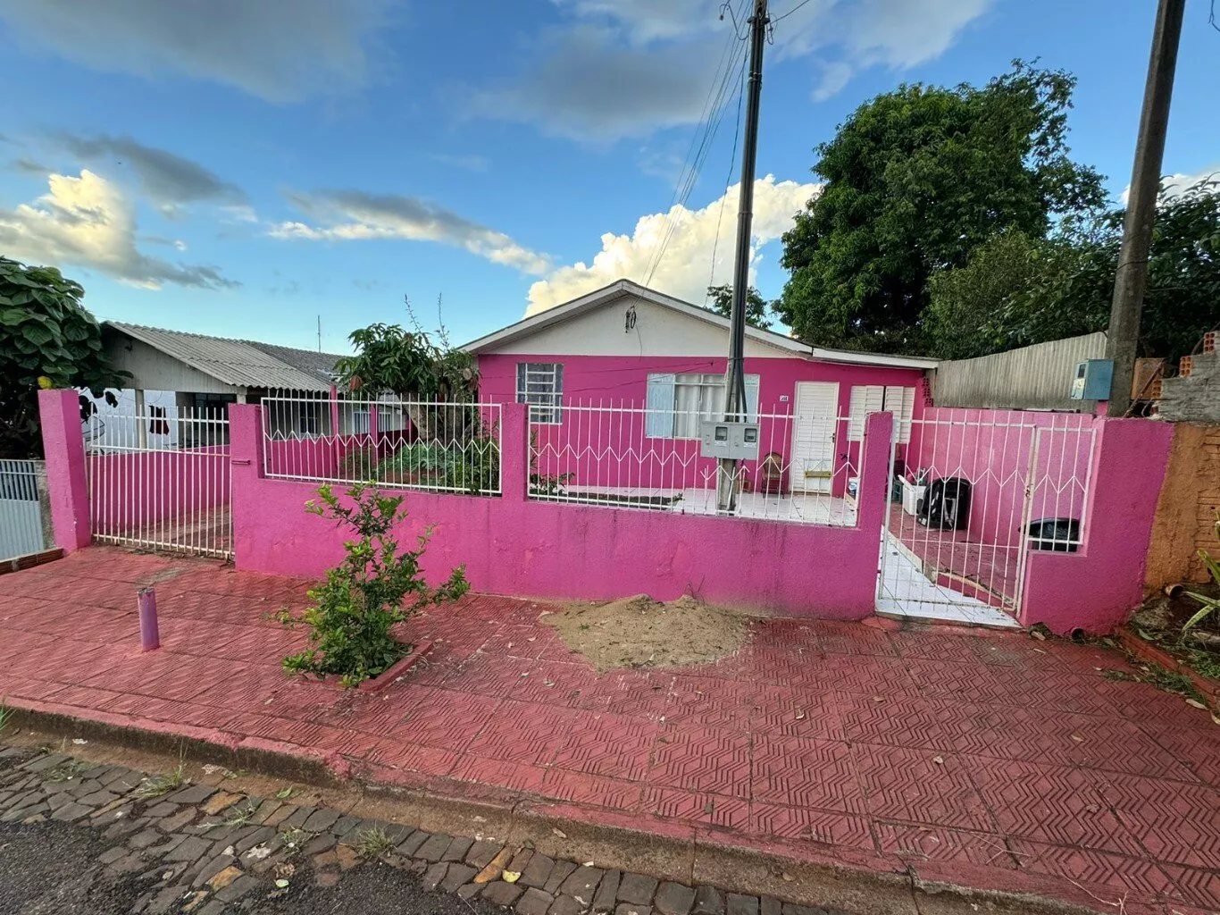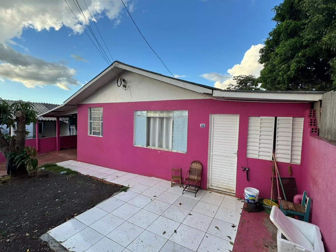 Residência contendo: garagem coberta, sala, cozinha, área de serviço, 03 dormitórios e banheiro