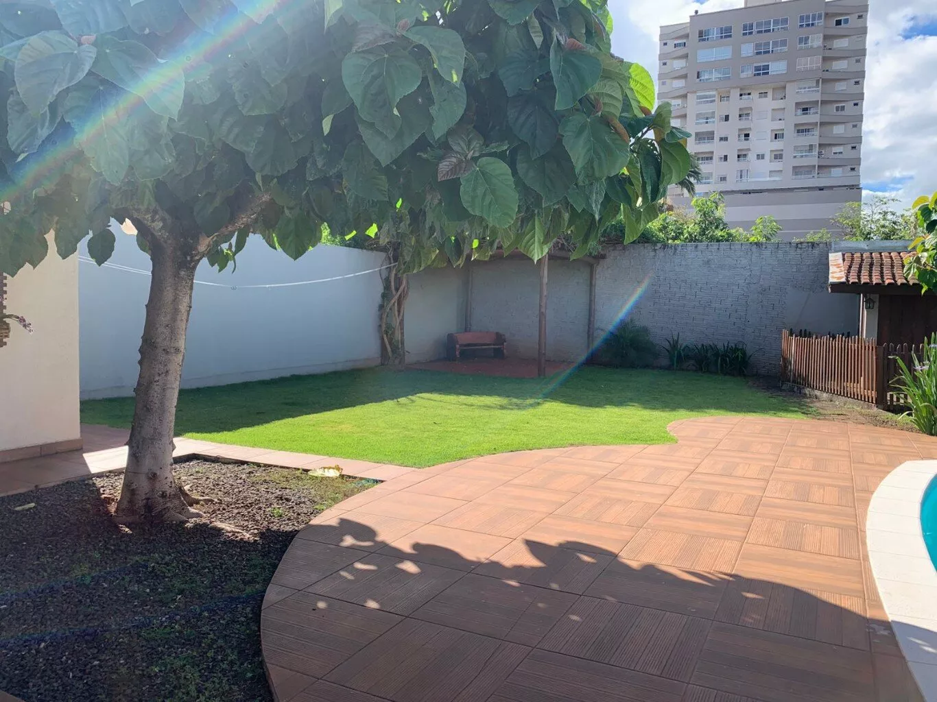 Terreno todo murado, gramado, com jardinagem e portão eletrônico